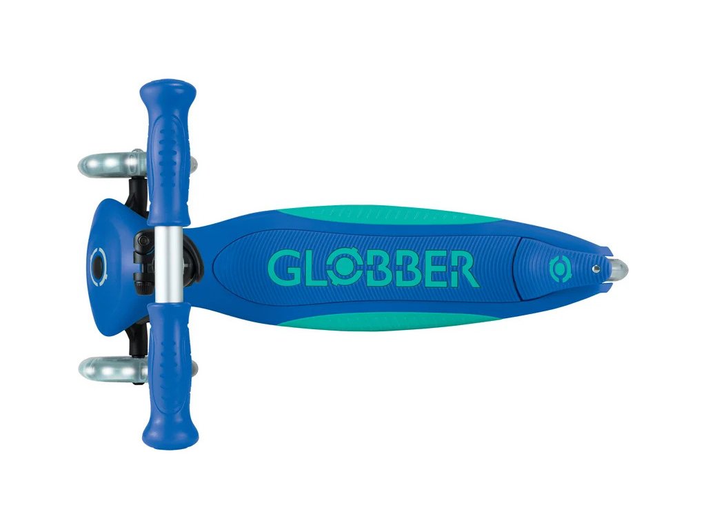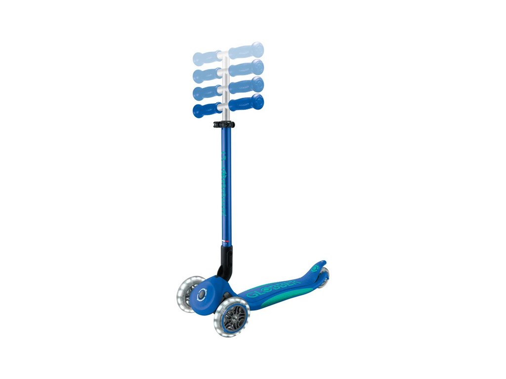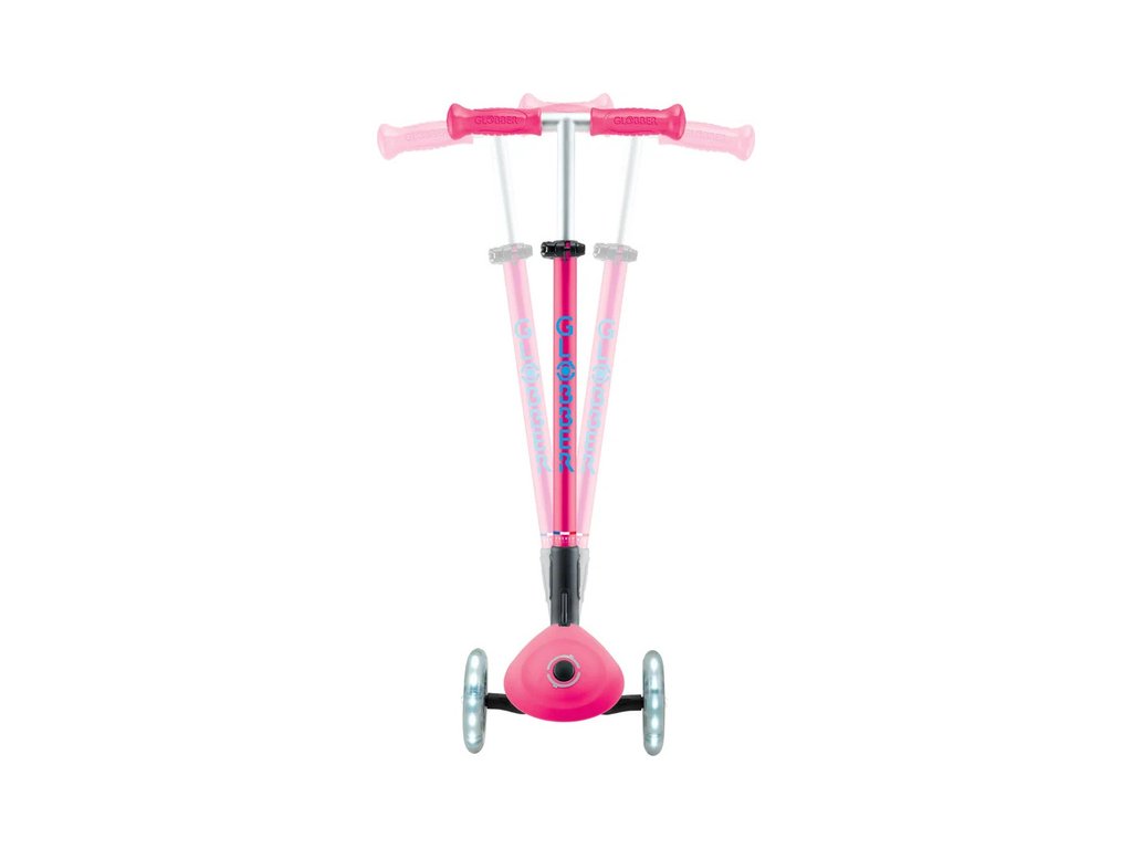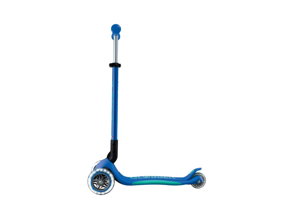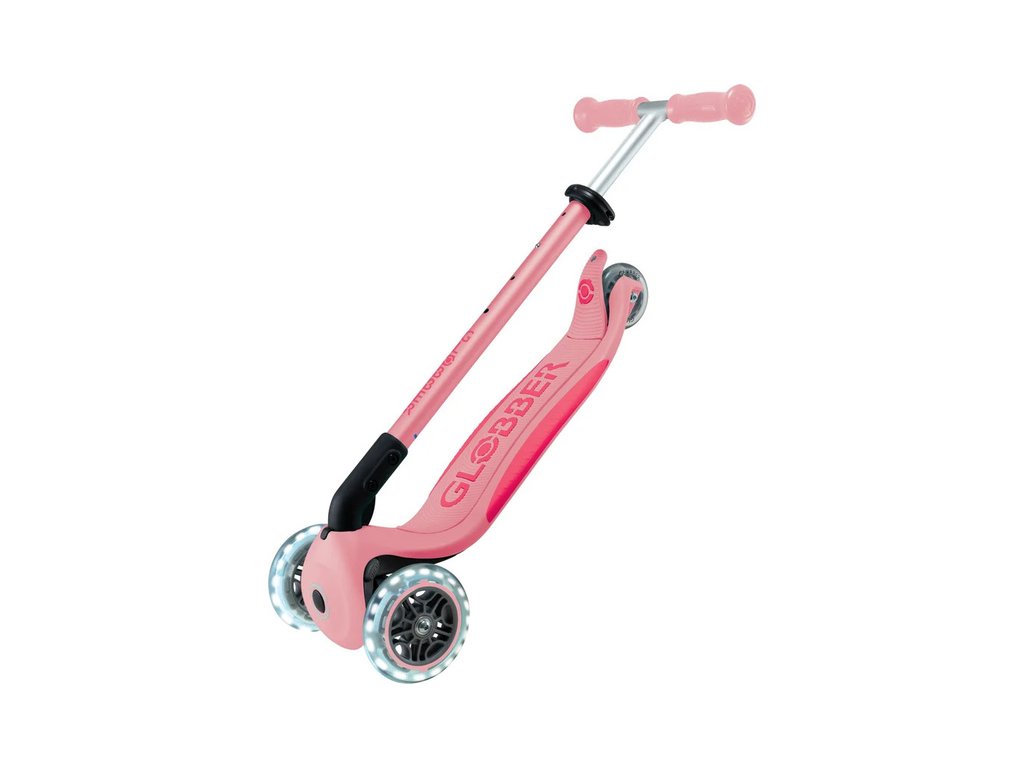 Koloběžka Primo Plus Lights V2 skládací od firmy Globber, je určena pro děti od 3 do 9 let. Ergonomické tělo, svítící kolečka, kvalitní materiály, patentovaná technologie zatáčení. Kolečka z vysoce odolné gumy (Polyuretan), kvalitní ložiska ABEC 5.Výška řídítek až 82 cm.