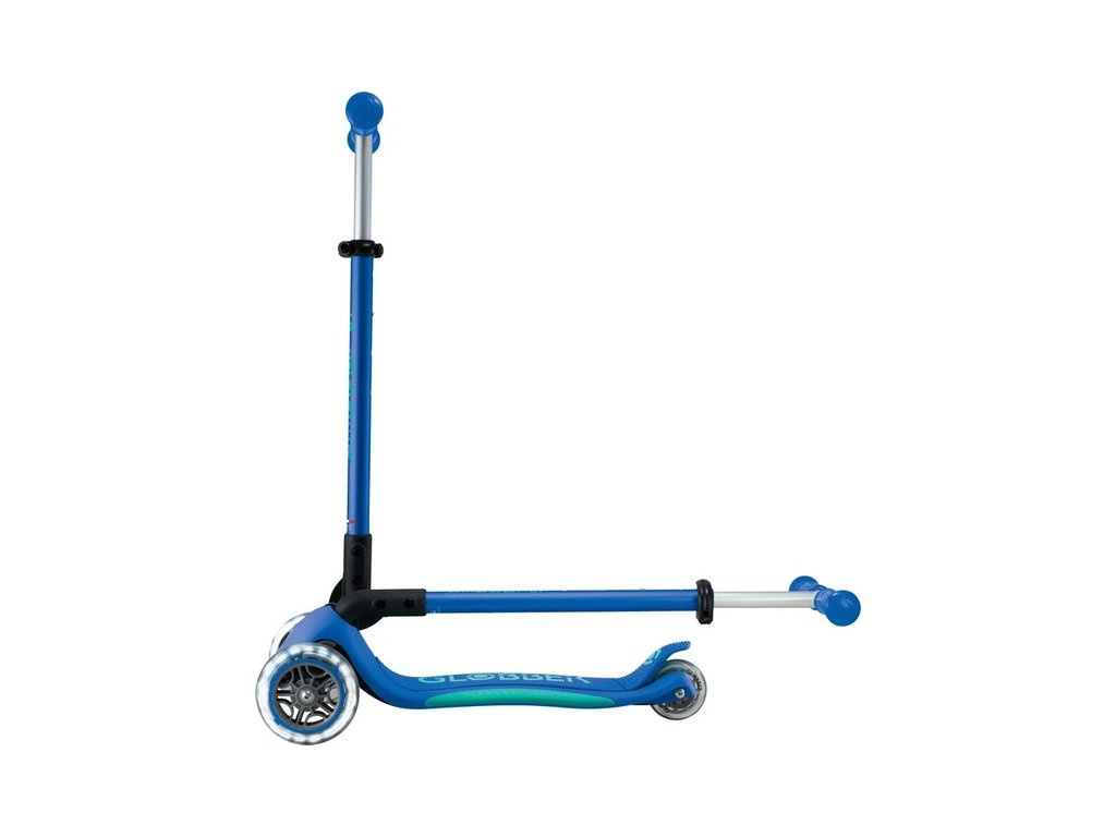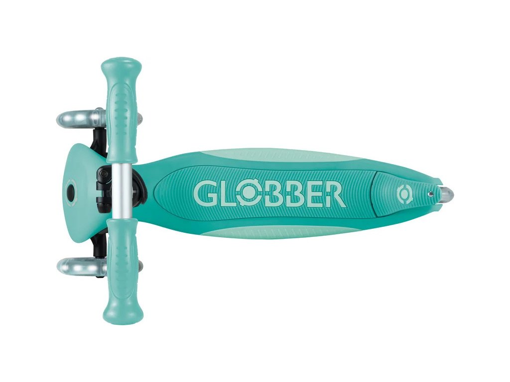 Koloběžka Primo Plus Lights V2 skládací od firmy Globber, je určena pro děti od 3 do 9 let. Ergonomické tělo, svítící kolečka, kvalitní materiály, patentovaná technologie zatáčení. Kolečka z vysoce odolné gumy (Polyuretan), kvalitní ložiska ABEC 5.Výška řídítek až 82 cm.