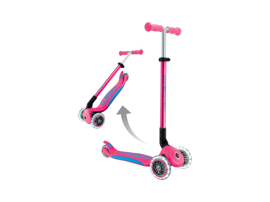 Globber - Koloběžka Primo Plus Lights V2 skládací Fuchsia/Sky Blue