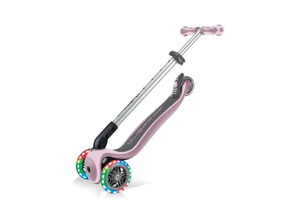 Unikátní koloběžka Primo skládací Lights od firmy Globber, je určena pro děti od 3 let do hmotnosti 50 kg. Je skládací, má svítící kolečka, ergonomickou nášlapnou část s protiskluzovou vrstvou a vyztužena je ocelovým profilem. Brzda z kompozitního materiálu, velká kolečka, kvalitní ložiska.