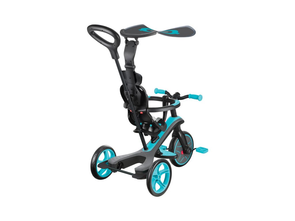 Neuvěřitelně všestranná tříkolka Globber - Explorer Trike 4in1, bude provázet vaše dítě od 10 měsíců do 5 let. Čtyři možnosti sestavení: vozítko pro batolata, tříkolka s ručkou pro rodiče, tříkolka a odrážedlo. Změna mezi tříkolkou a odrážedlem bez nutnosti nářadí. 5-bodový pás, sluneční clona.