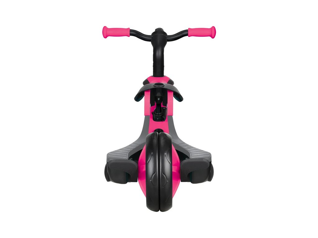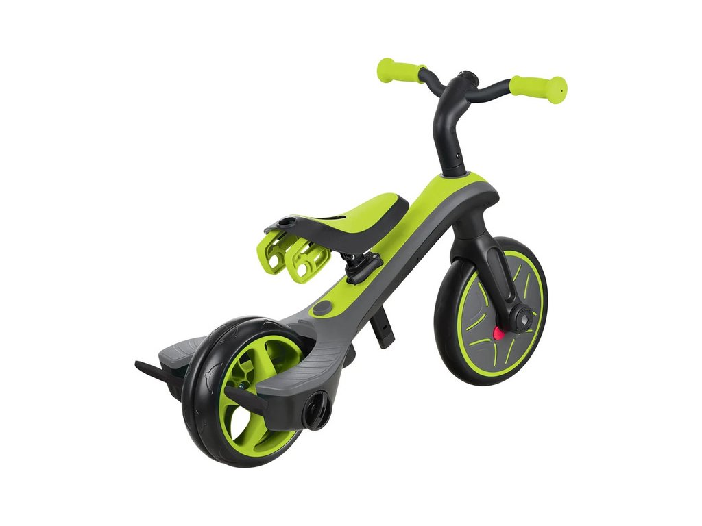 Tříkolka společnosti Globber pro děti je jedinečná, protože je to jediná tříkolka na trhu, která se díky patentovanému mechanismu kol může změnit na odrážedlo. Rodiče mohou snadno a rychle změnit dvě zadní kola na jedno kolo s dvojnásobnou šířkou bez použití nářadí. Stačí otočení knoflíku zadních kol, což umožňuje změnit produkt z tříkolky na odrážedlo. Veškeré změny mezi jednotlivými fázemi se dělají bez pomoci nářadí.
