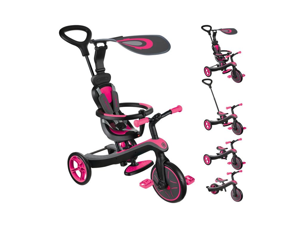 Neuvěřitelně všestranná tříkolka Globber - Explorer Trike 4in1, bude provázet vaše dítě od 10 měsíců do 5 let. Čtyři možnosti sestavení: vozítko pro batolata, tříkolka s ručkou pro rodiče, tříkolka a odrážedlo. Změna mezi 4 typy bez nutnosti nářadí. 5-bodový pás, sluneční clona.