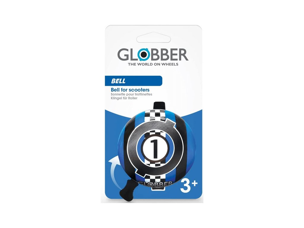 Dětský zvonek Globber na řídítka kola, či koloběžky. Umožňuje zvonit pomocí palce a bezpečně držet oběma rukama řídítka. Poutavý design s různými motivy.