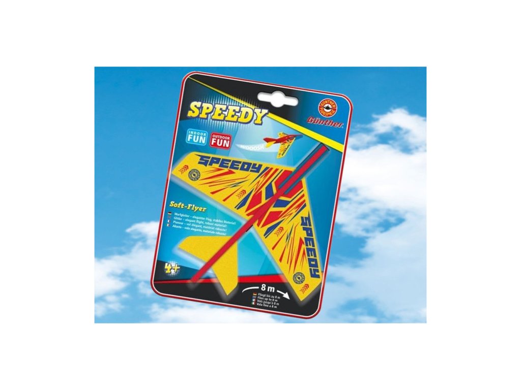 Speedy je vrhací kluzák navržený pro maximální zábavu i bezpečnost. Díky svému unikátnímu aerodynamickému tvaru zvládá jak klouzavé lety na dlouhé vzdálenosti, tak vzrušující smyčky a akrobatické triky. Vhodný pro děti už od 4 let a skvělý i pro dospělé, kteří se nebojí vrátit do dětských let!