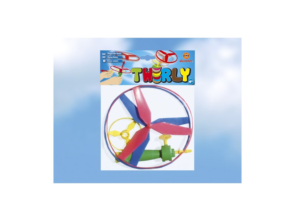 Průměr vrtulek je 19 cm. Součástí balení je odpalovač na zpětné zatažení. Stačí nasadit vrtulky (rotory) na odpalovač a pak jen zatáhnout. Odpalovač může vystřelit 2 vrtulky najednou (malou a velkou). Vystřelovací vrtulky TWIRLY patří mezi dětmi oblíbené vystřelovací a létající hračky a dětské létající vrtulky na ven.