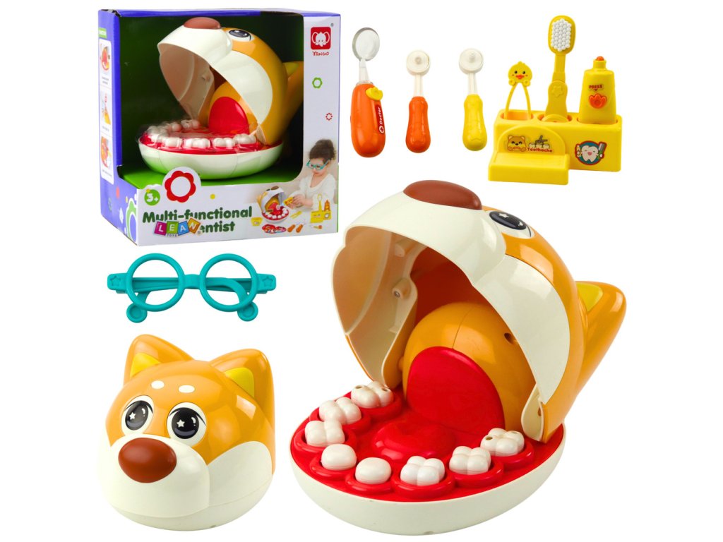 Psí zubař je vzdělávací hračka, která děti jednoduchým a poutavým způsobem uvádí do světa zubního lékařství. Psí hlava s 8 vyjímatelnými zuby a širokou škálou příslušenství umožňuje realistickou hru se zubařem. Děti mohou k dalšímu prozkoumání svých zubů použít zubní kartáček, vrtačku, pinzetu a osvětlené zrcátko na baterie. Další prvky, jako je tuba zubní pasty, lahvičky s léky a fixy na čokoládu a bonbóny, učí prostřednictvím hry důležitosti ústní hygieny a péče o zdravé zuby.