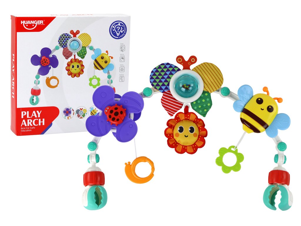 Hrací oblouk s veselými závěsnými hračkami je ideálním společníkem pro miminka od prvních měsíců života 👶✨ Motýlek a včelka přitahují pozornost jemnými barvami a pohybem.