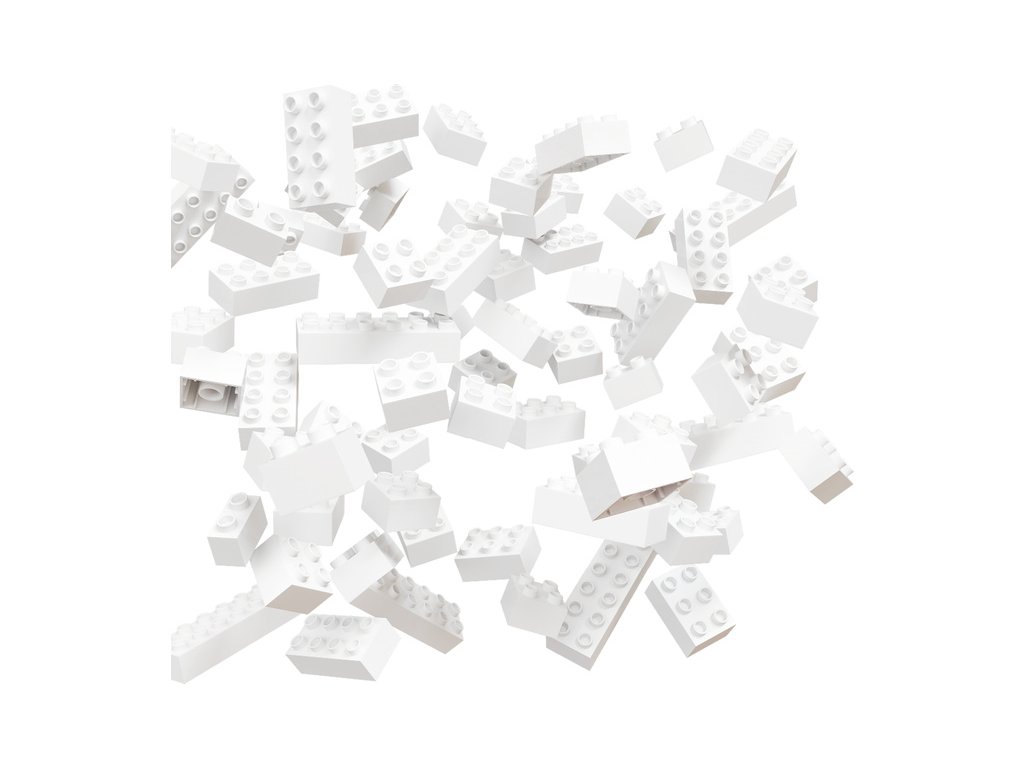 Balení obsahuje 60 bílých kostek (10 ks - 1x2, 23 ks - 2x2, 8 ks - 2x3, 11 ks - 2x4, 4 ks - 2x6, 4 ks - 2x8).