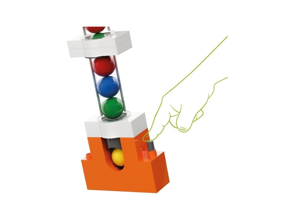 Díky důmyslné technologií kuličkového výtahu je po dokončení zběsilé jízdy konečně možné přesunout kuličku zpět na začátek dráhy a vytvořit tak nikdy nekončící zábavu.