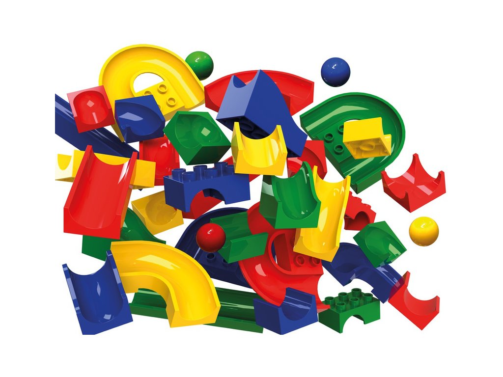 Kuličková dráha Hubelino obsahuje: 51 stavebních dílků, 4 kuličky.