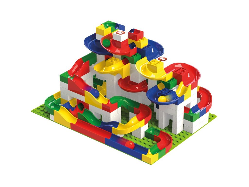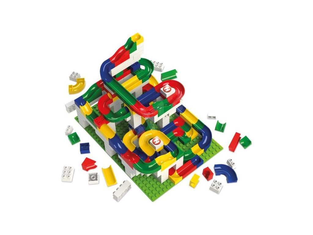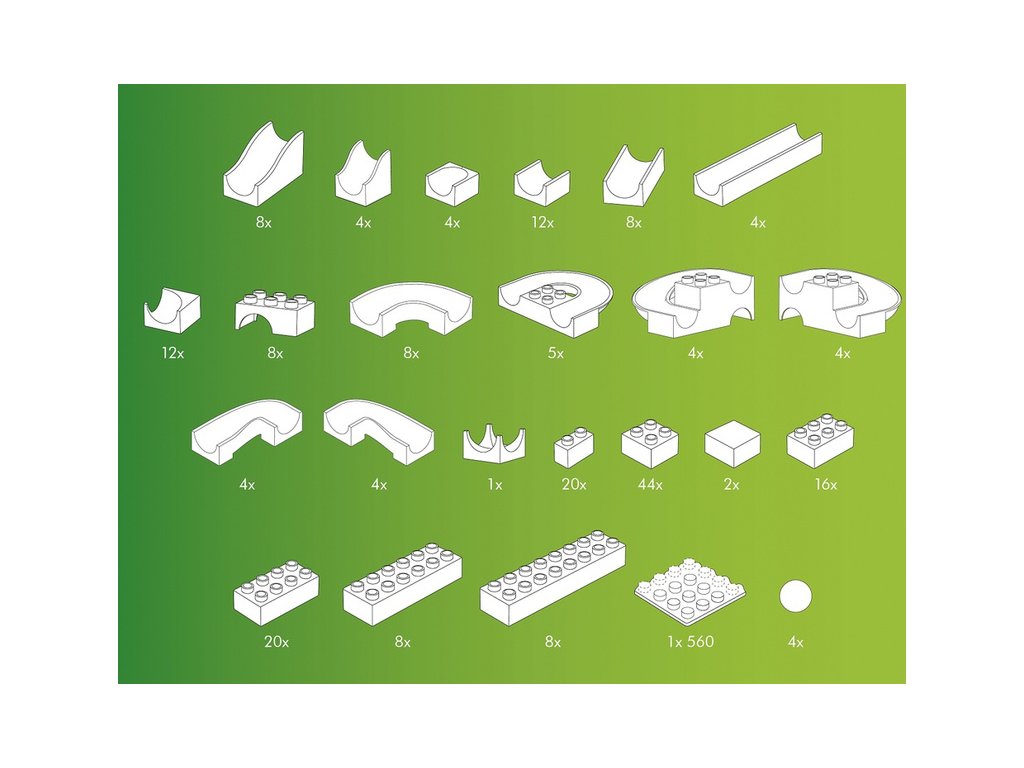 Set Maxi obsahuje: 82 dílků pro kuličku, 127 stavebních dílků, 4 kuličky, návod na sestavení.