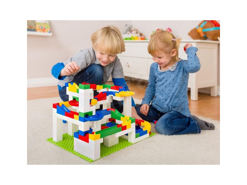 Kuličková dráha HUBELINO - Set s kostakmi Maxi je pro děti skvělým společníkem. Poskytuje spousty zábavy a kreativity, podporuje logické myšlení i smysl pro detail. Můžete si poskládat dráhu podle přiloženého návodu nebo svou vlastní, ve fantazii se meze nekladou.