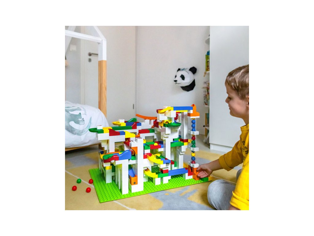 Kuličková dráha HUBELINO - Set s kostakmi Mega je pro děti skvělým společníkem. Poskytuje spousty zábavy a kreativity, podporuje logické myšlení i smysl pro detail. Můžete si poskládat dráhu podle přiloženého návodu nebo svou vlastní, ve fantazii se meze nekladou.