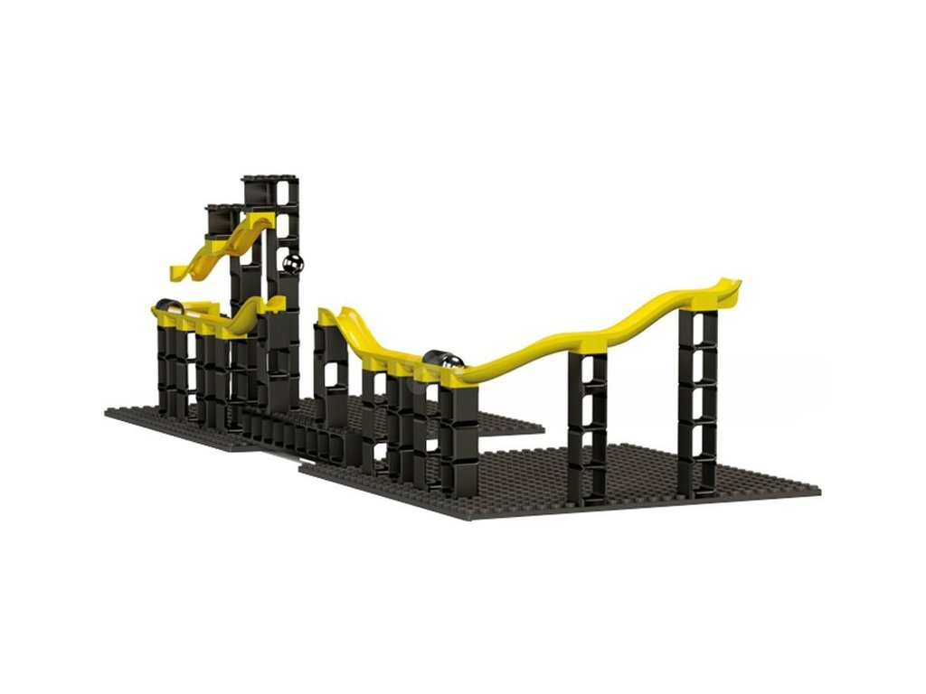 V sadě naleznete 70 stavebních kostek a kanón na střílení kuliček, ze kterých můžete poskládat dráhu podle návodu nebo zcela podle vlastní fantazie. Nový systém dráhy Hubelino Pi vyniká nápaditostí konstrukce a atraktivním designem.