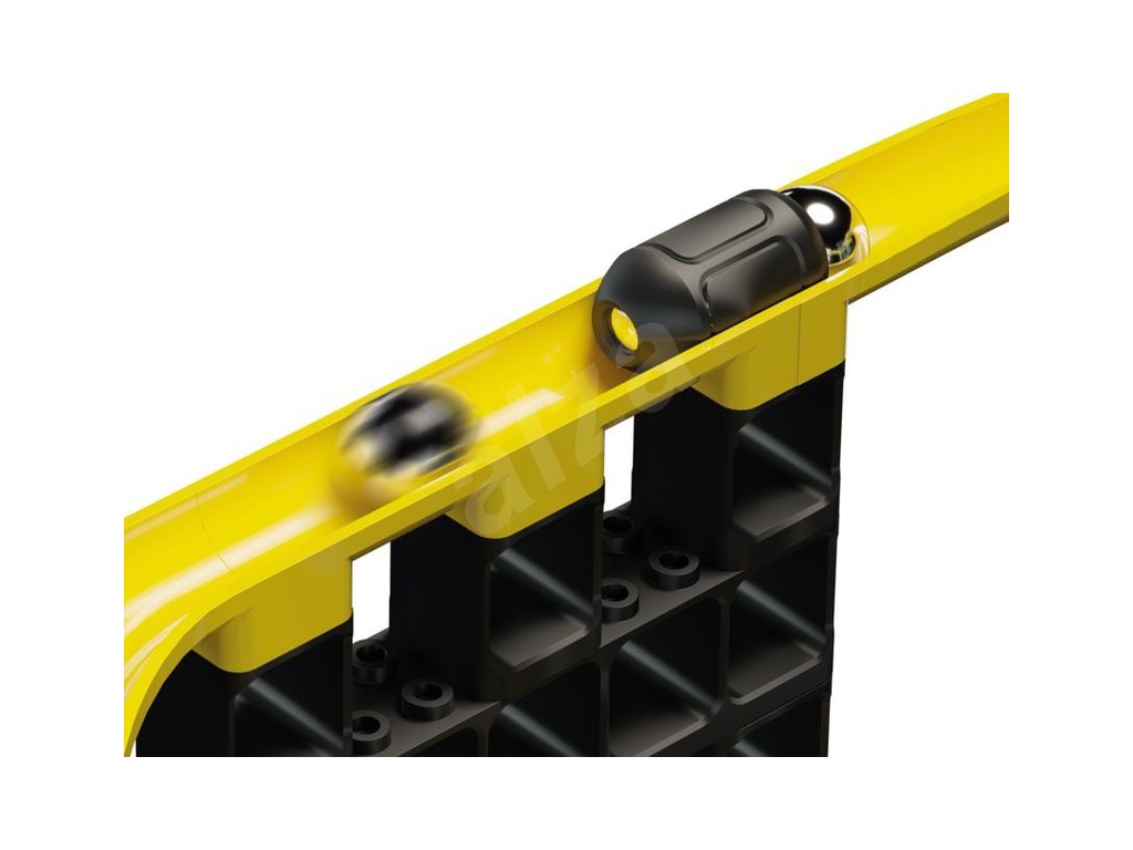 Pi kuličková dráha - set s kanónem obsahuje: 2 kanóny, 24 kostek pro stavbu dráhy, 38 základních stavebních kostek, 2 základní desky, 4 kuličky, 1 návod k použití.