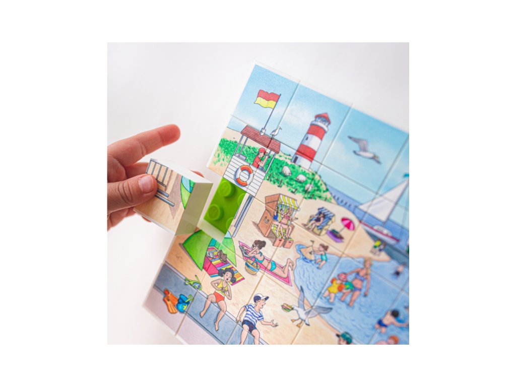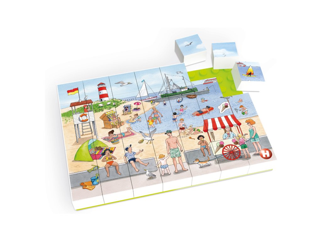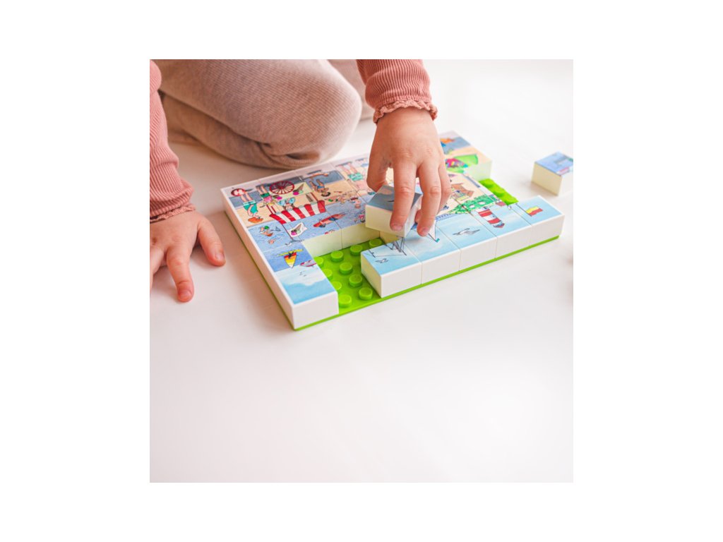 Složte obrázek Dovolená na pláži pomocí kostiček Hubelino, součástí balení je podložka na kterou se kostičky připevní. Obrázek je složen z 35 kostiček. Podporuje rozvoj logického myšlení a senzomotorických schopností dětí. Vhodné pro děti od 4 let.