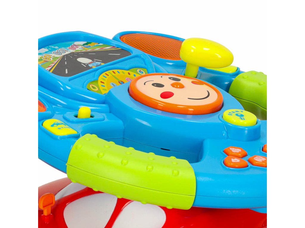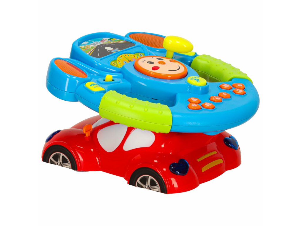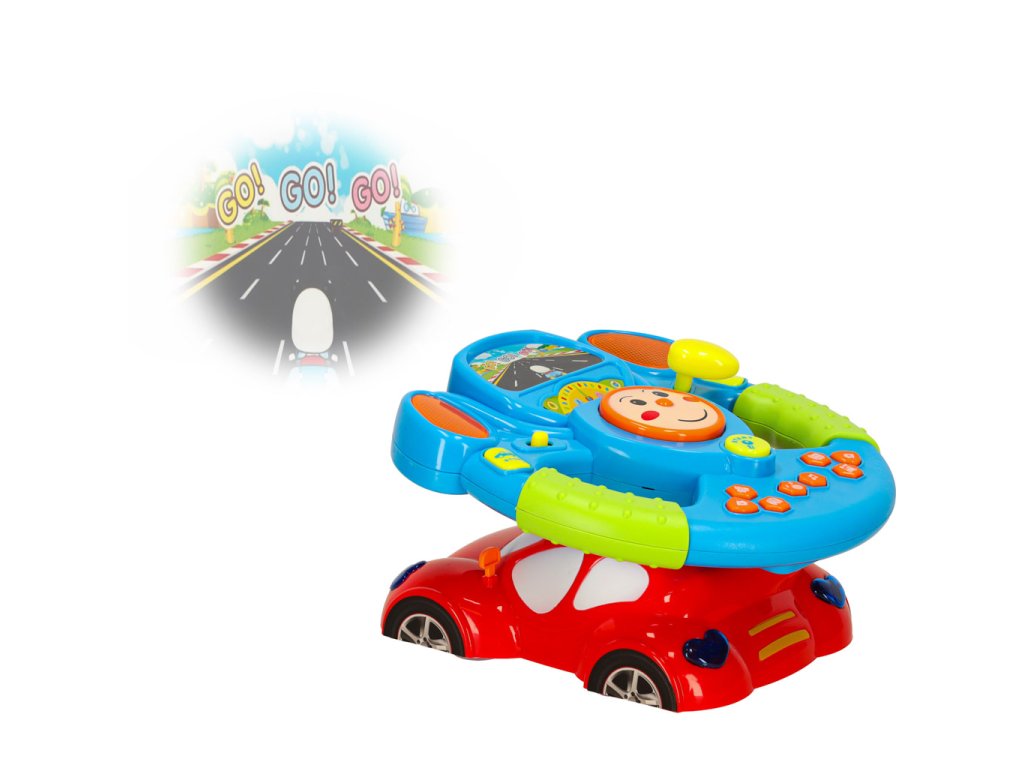 Volant je umístěn na červeném autě s vestavěným projektorem zobrazujícím obraz silnice, což stimuluje dětskou fantazii. Hračka má ovládání hlasitosti (dvě úrovně) a přísavky na spodní straně, které umožňují připevnění k různým povrchům. Je napájena třemi AA bateriemi (nejsou součástí balení). Podporuje rozvoj jemné motoriky a sluchového vnímání dětí.