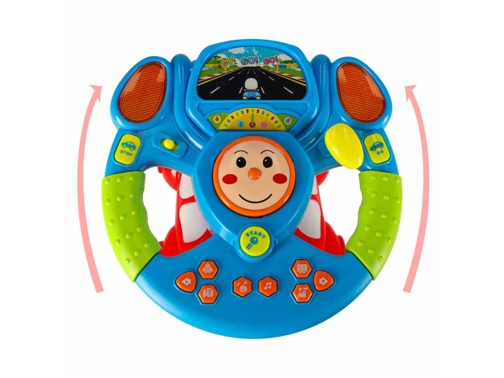 Interaktivní dětský volant je hračka, která nabízí řadu zvuků a melodií pro hraní v roli řidiče. Každé tlačítko vydává realistické zvuky, jako jsou signály sanitky a policejního auta, zvuky vlaku a nákladního auta nebo řazení a brzdění.