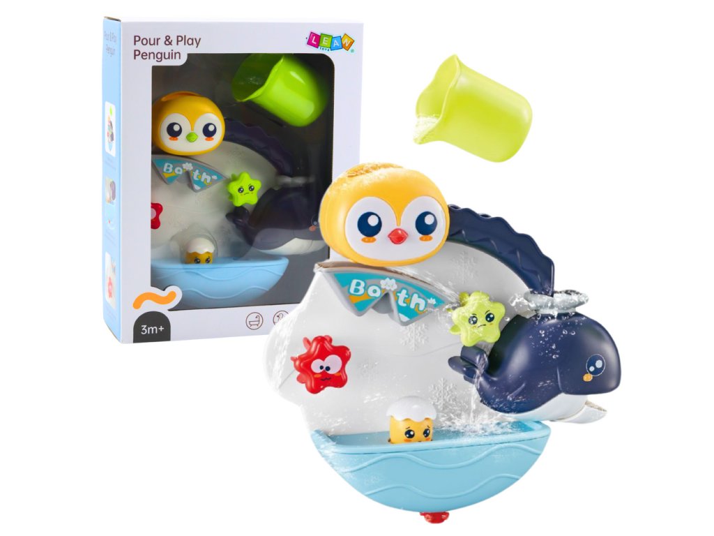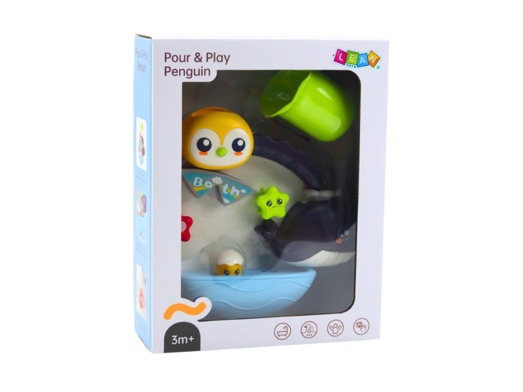 Hračka je vybavena vodními efekty, které se aktivují po nalití vody. Tučňák a další zvířata se začnou pohybovat a otáčet, což v dítěti probouzí zvědavost a koupání je ještě vzrušující. Sada navíc obsahuje hrnek s otvory, který umožňuje nalévat vodu a učit se o příčinných vztazích, což podporuje rozvoj logického myšlení.