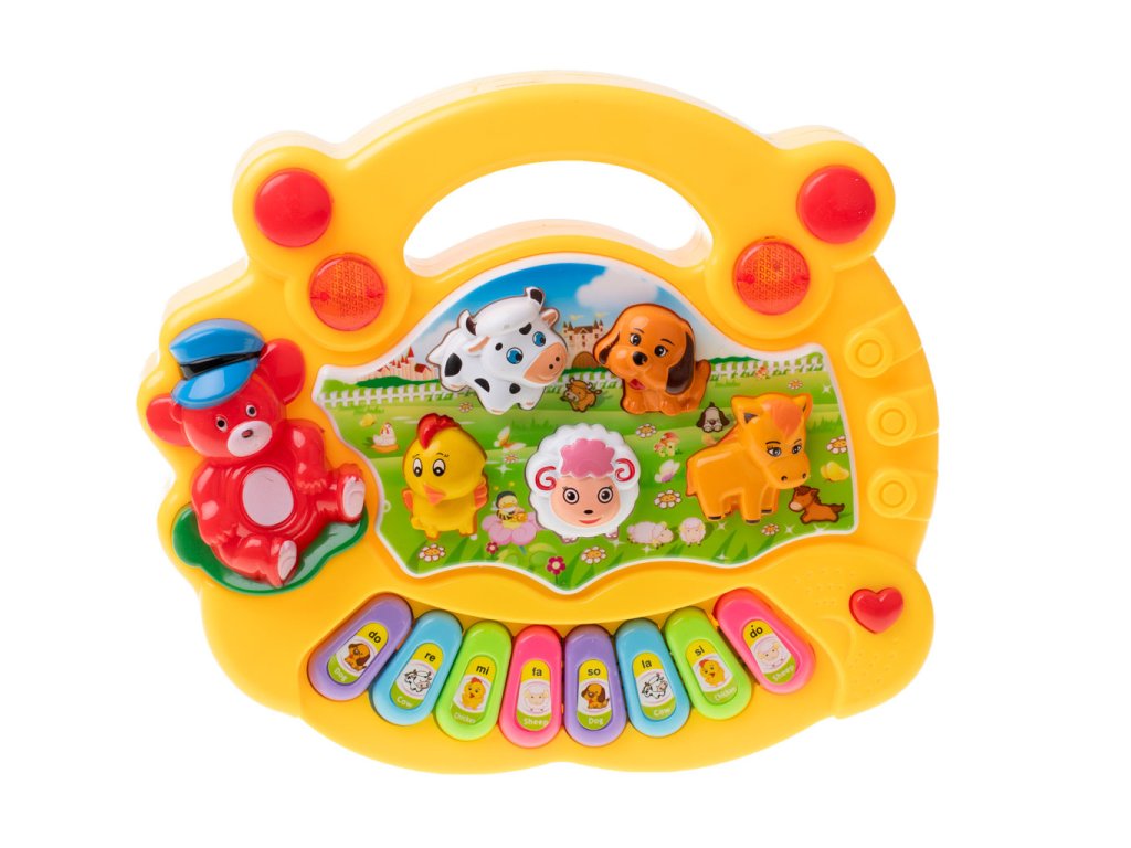 Interaktivní klavír pro děti. V závislosti na zvoleném režimu klavír hraje stupnice, melodie nebo zvuky zvířat.