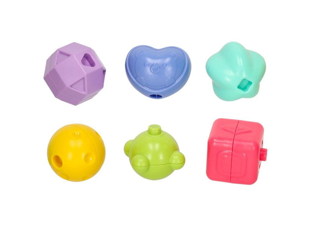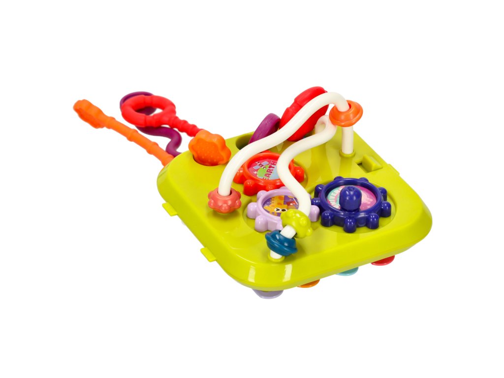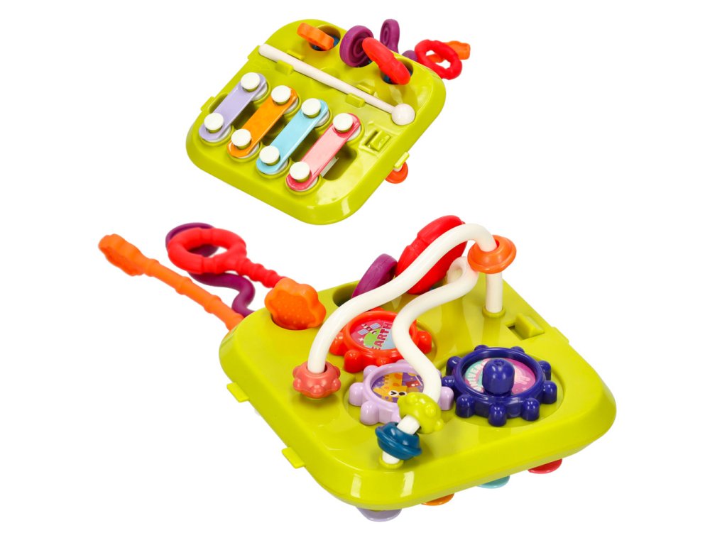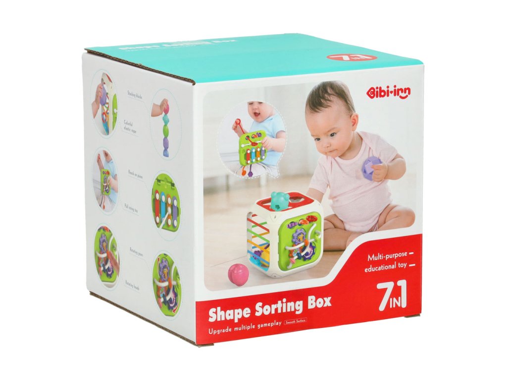 Vzdělávací senzorická kostka je hračka určená pro děti od 18 měsíců a starší, která podporuje senzorický, motorický a kognitivní vývoj. Každá strana kostky nabízí různé interaktivní prvky, jako je přiřazování kostek k otvorům, mini xylofon, tahání za provázky a pohyblivé korálky na tyčkách. Sada obsahuje šest barevných kostek, které lze přiřazovat k otvorům nebo skládat na sebe, což rozvíjí manuální dovednosti dítěte.