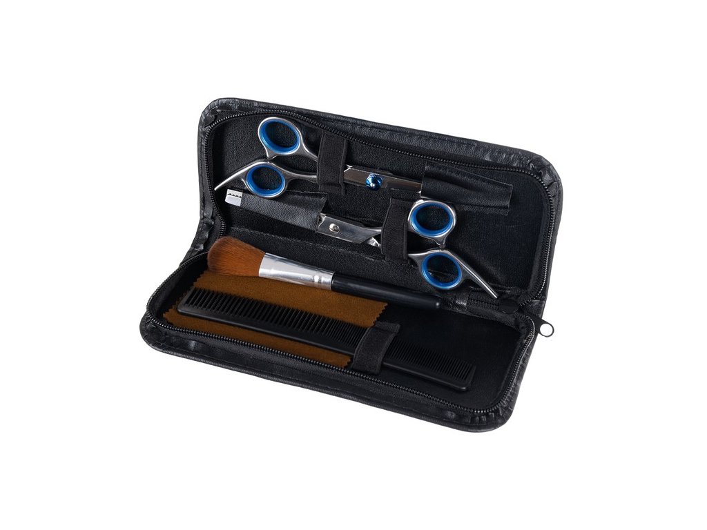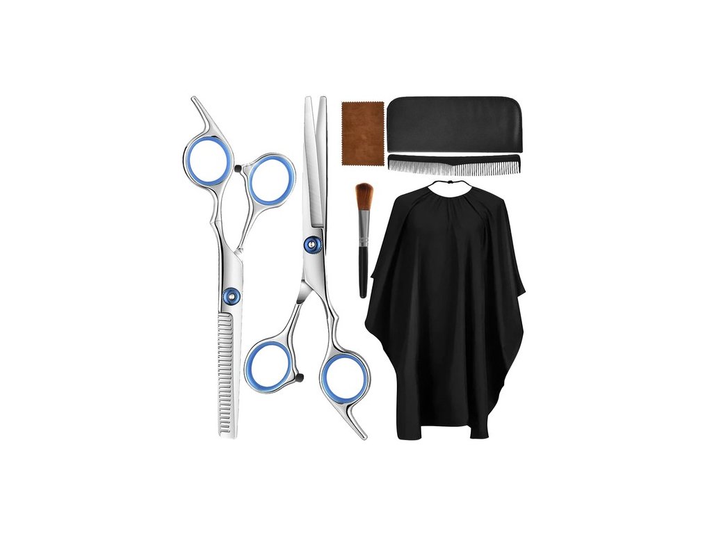- Celá sada obsahuje 7 prvků. Součástí je kadeřnická pláštěnka, která ochrání vaše oblečení před ušpiněním při kadeřnických kúrách, 2 páry nůžek. Dále je zde hřeben, kartáč a hadřík na čištění nůžek.