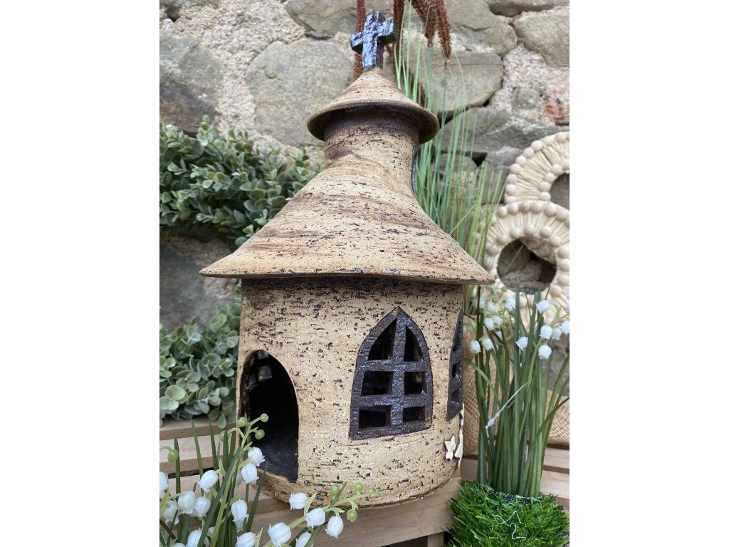 Ze zadní strany kapličky se nachází otvor pro vložení svíčky. Po jejím zapálení začne světlo jemně prosvítat okénky a vytvoří krásný světelný efekt, který zpříjemní večerní chvíle 🕯️✨.