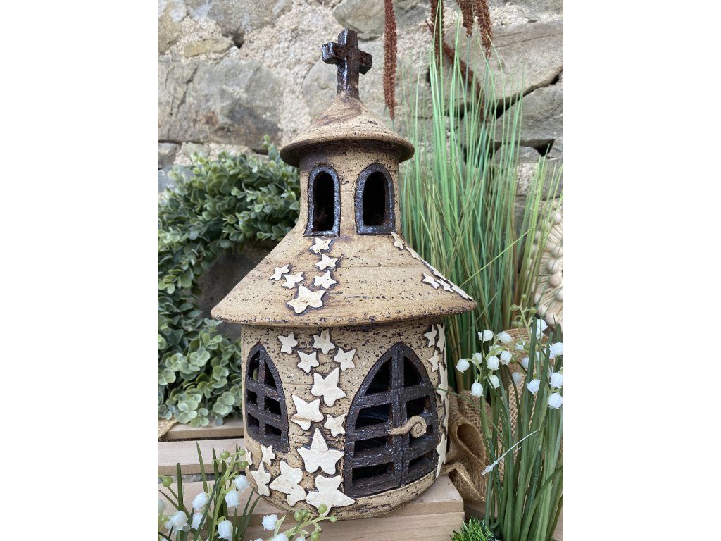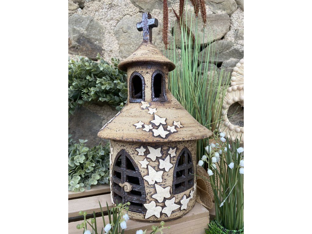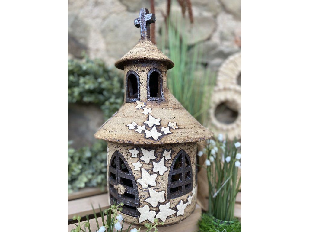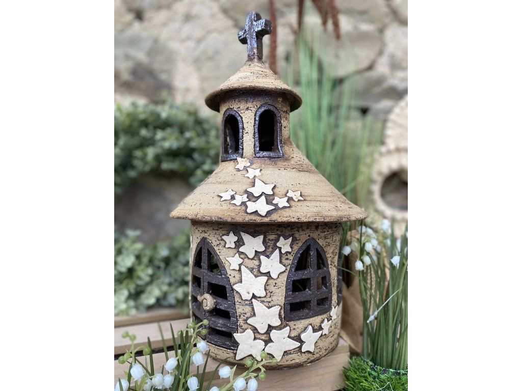 Keramická kaplička s motivem břečťanu je krásná dekorace, která vnese do vašeho domova nebo zahrady klidnou a příjemnou atmosféru 🌿⛪.