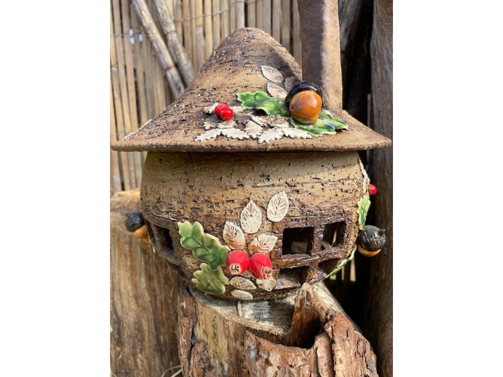 Keramický domeček s mixem zdobení je originální dekorace, která přinese do vašeho domova nebo zahrady příjemnou atmosféru 🏠✨.