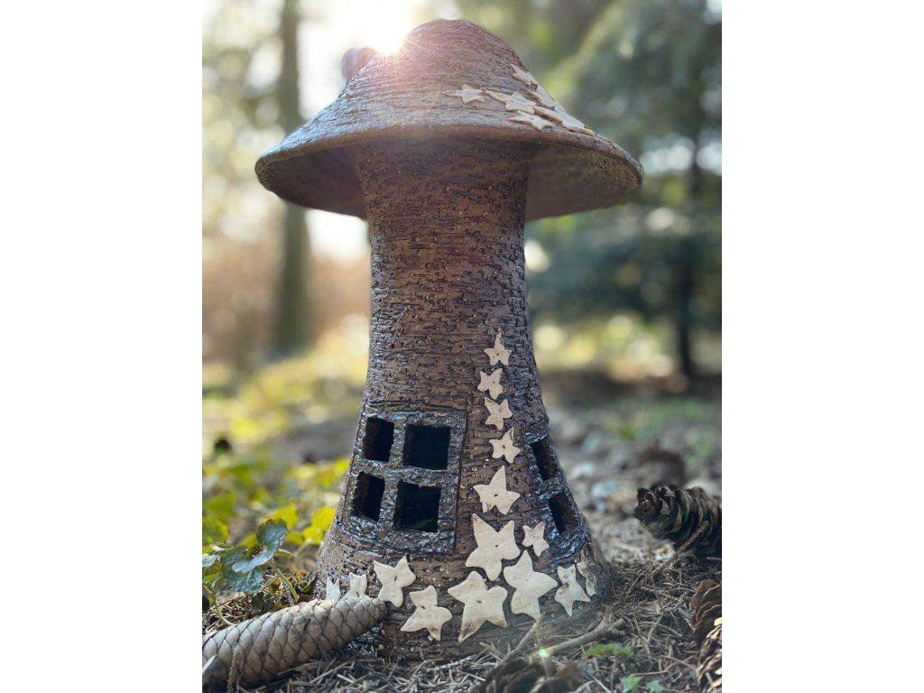 Keramický domeček na noze s motivem břečťanu je stylová dekorace, která vnese do vašeho domova nebo zahrady klidnou a přírodní atmosféru 🌿🏠.