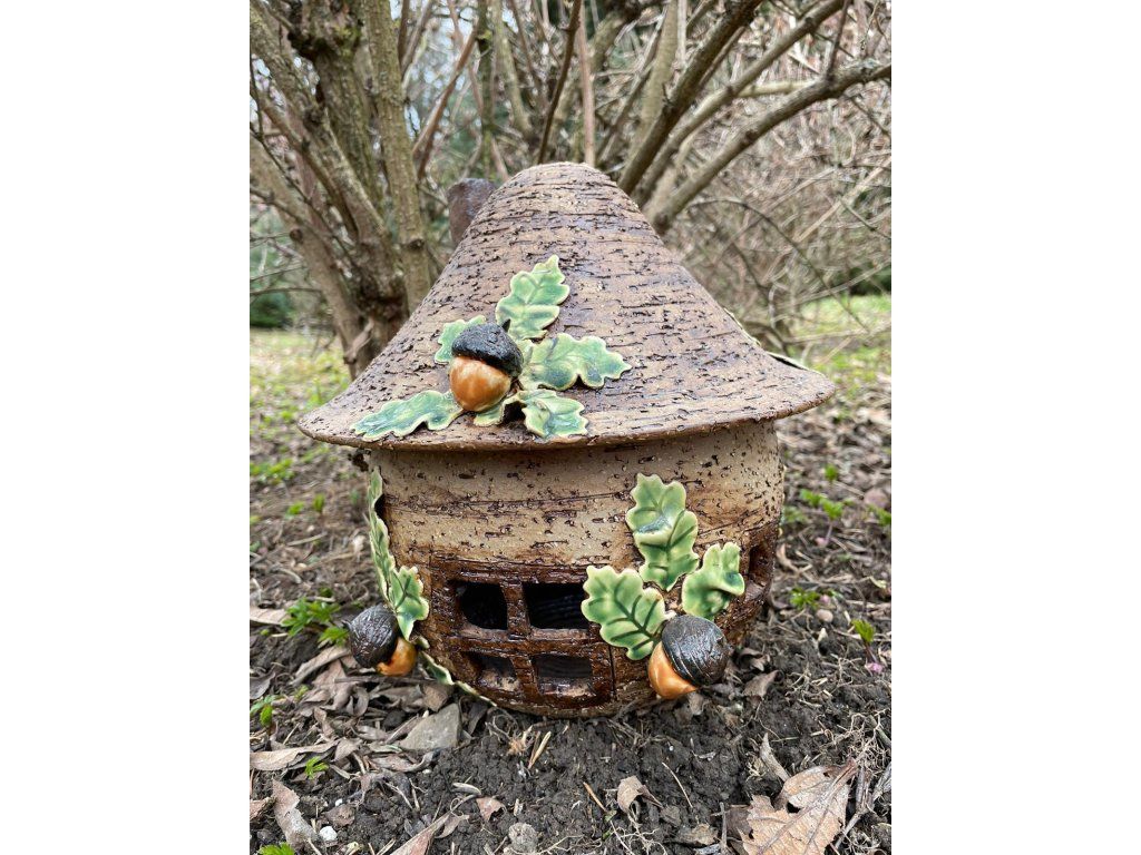 Keramický domeček s motivem barevných dubových listů je originální dekorace, která přinese do vašeho domova nebo zahrady příjemnou přírodní atmosféru 🍂🏠.