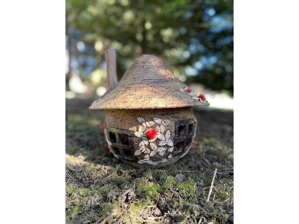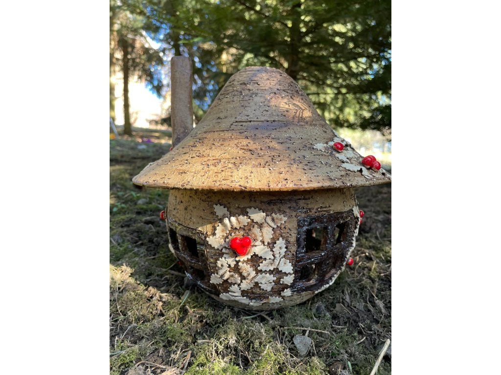 Domeček je vyroben z hrubého šamotu, který mu dodává pevnost, stabilitu a rustikální vzhled. Díky tomu je dekorace vhodná nejen do interiéru, ale i do exteriéru.