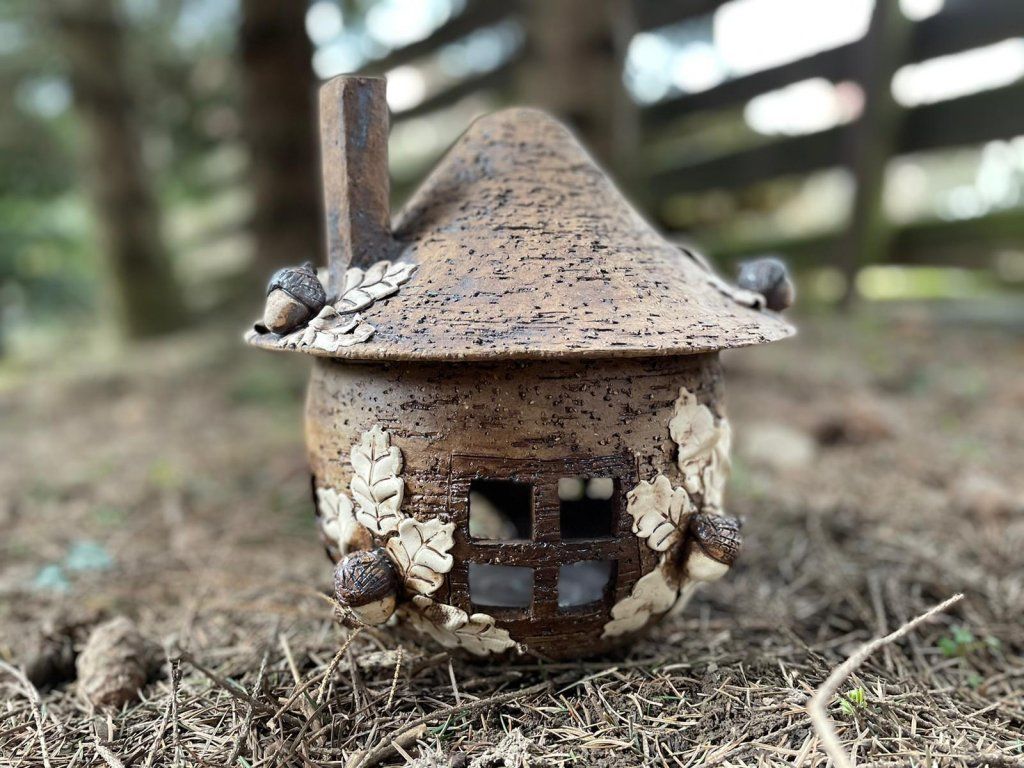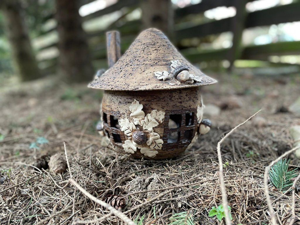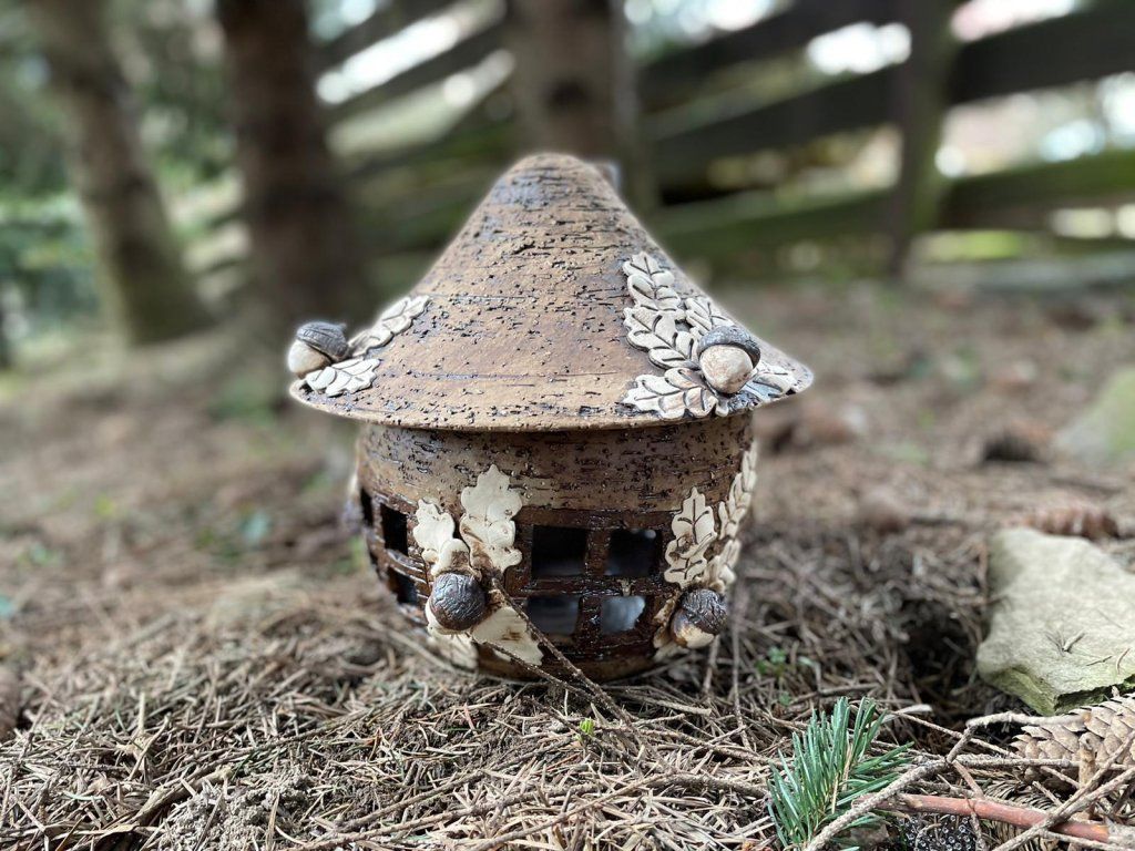 Keramický domeček s motivem přírodních dubových listů je stylová dekorace, která přinese do vašeho domova nebo zahrady kousek přírody 🍂🏠.