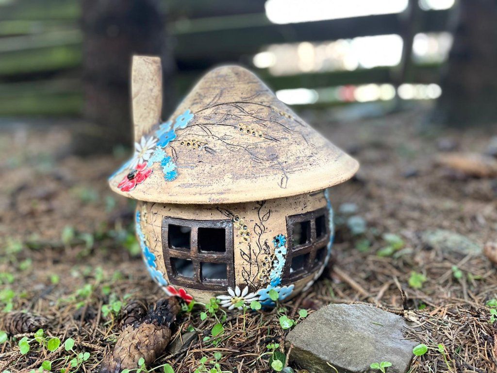 Domeček je vyroben z jemného šamotu, který mu dodává pevnost a krásný přírodní vzhled. Díky tomu je dekorace vhodná nejen do interiéru, ale i do exteriéru.