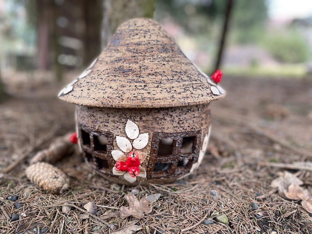 Keramický domeček s motivem šípků je stylová dekorace, která přinese do vašeho domova nebo zahrady přírodní a útulnou atmosféru 🍃🏠.