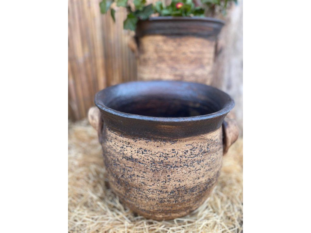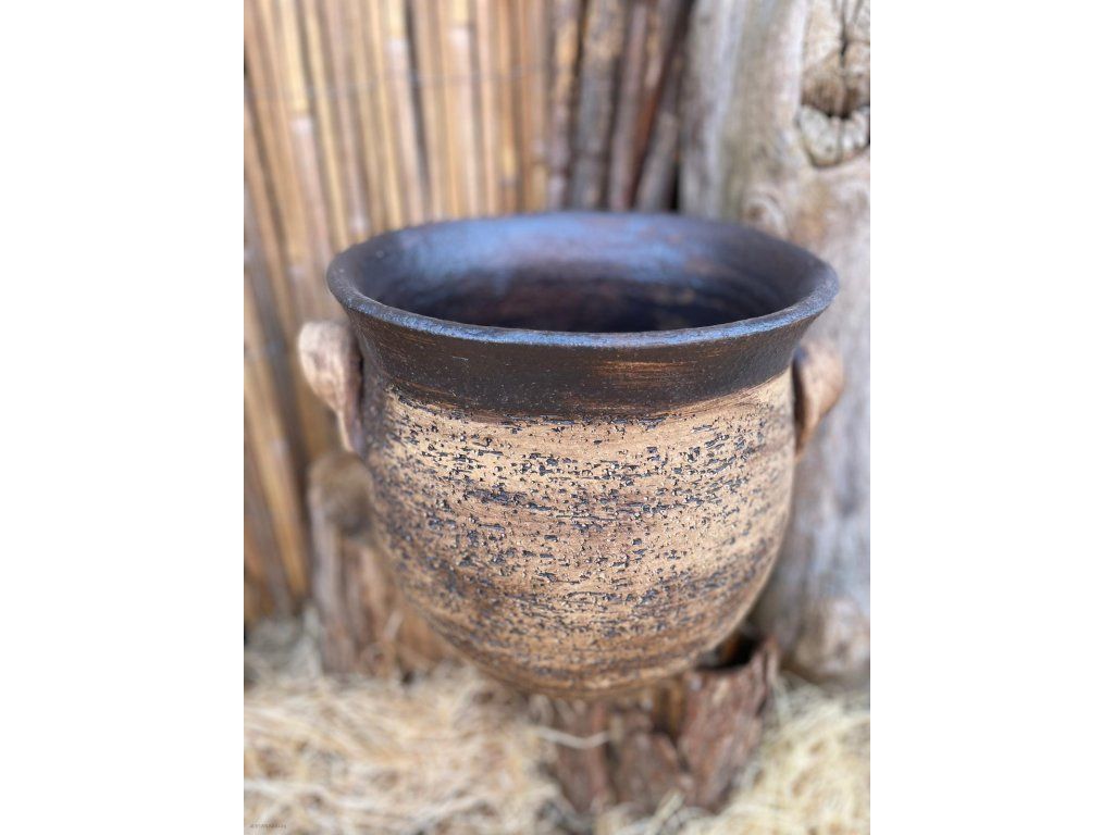 Po stranách jsou umístěna praktická ucha, která usnadňují manipulaci a zároveň dodávají obalu krásný rustikální vzhled.