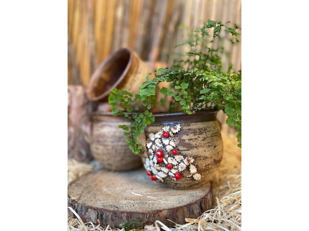 Motiv cesmíny dodává obalu jemný přírodní vzhled inspirovaný zimní přírodou. Skvěle se hodí pro osázení květinami, bylinkami nebo menšími okrasnými rostlinami a krásně doplní parapet, terasu nebo zahradní zákoutí.