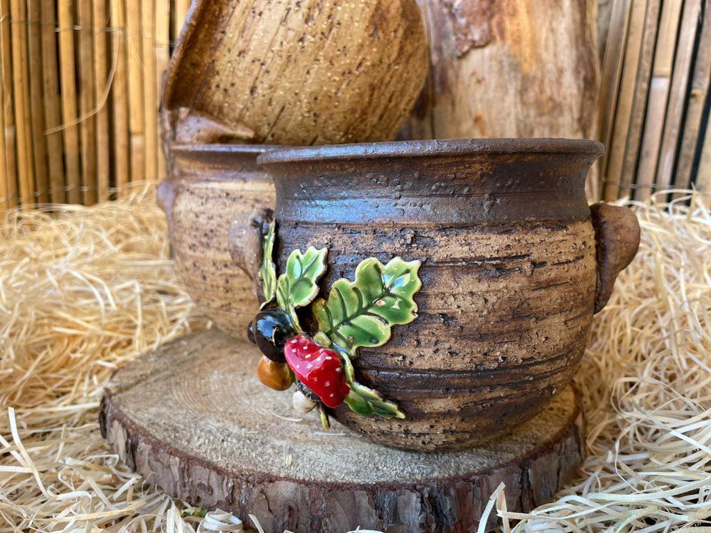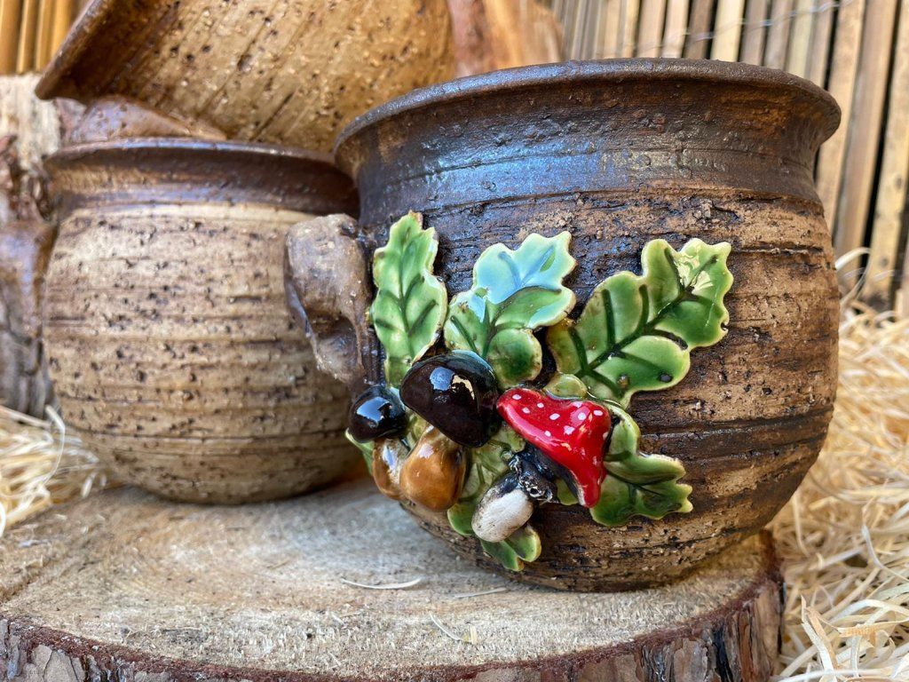 Keramický obal na květináč s motivem hub je krásná a praktická dekorace, která oživí váš domov, balkon nebo zahradu 🍄🪴.