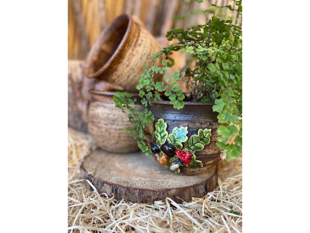 Keramický obal na květináč č.1 - 15cm, houby