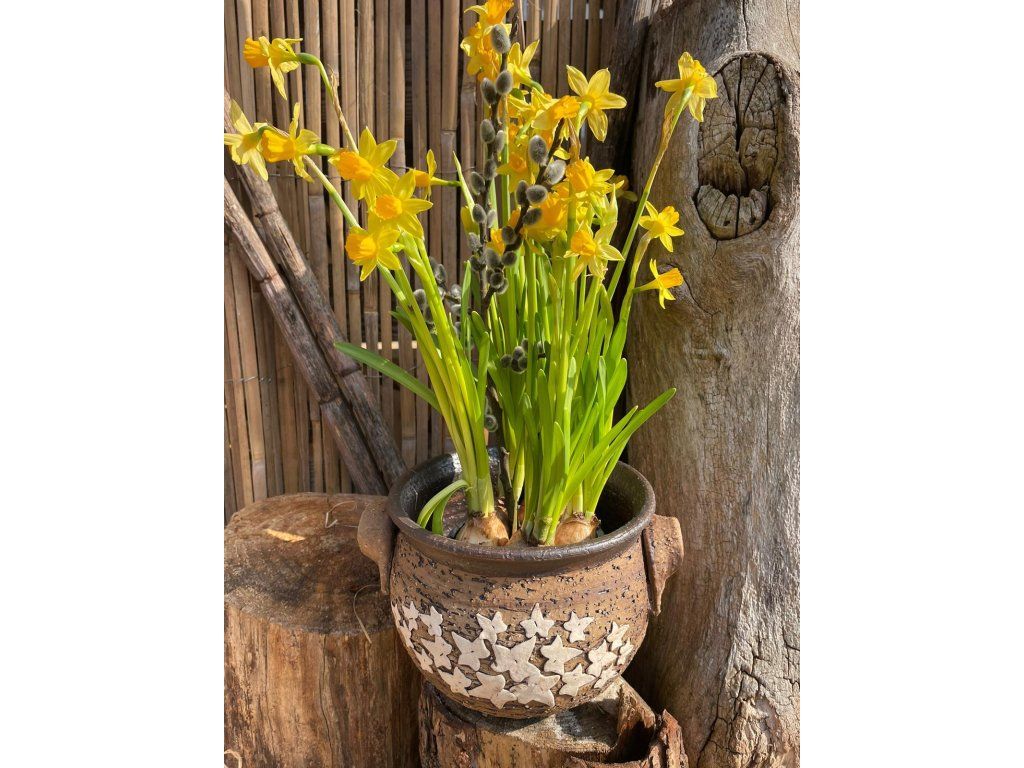 Obal je vyroben z hrubého šamotu, který je pevný, odolný a má krásnou rustikální strukturu. Díky tomu působí velmi přirozeně a snadno zapadne do přírodního prostředí.