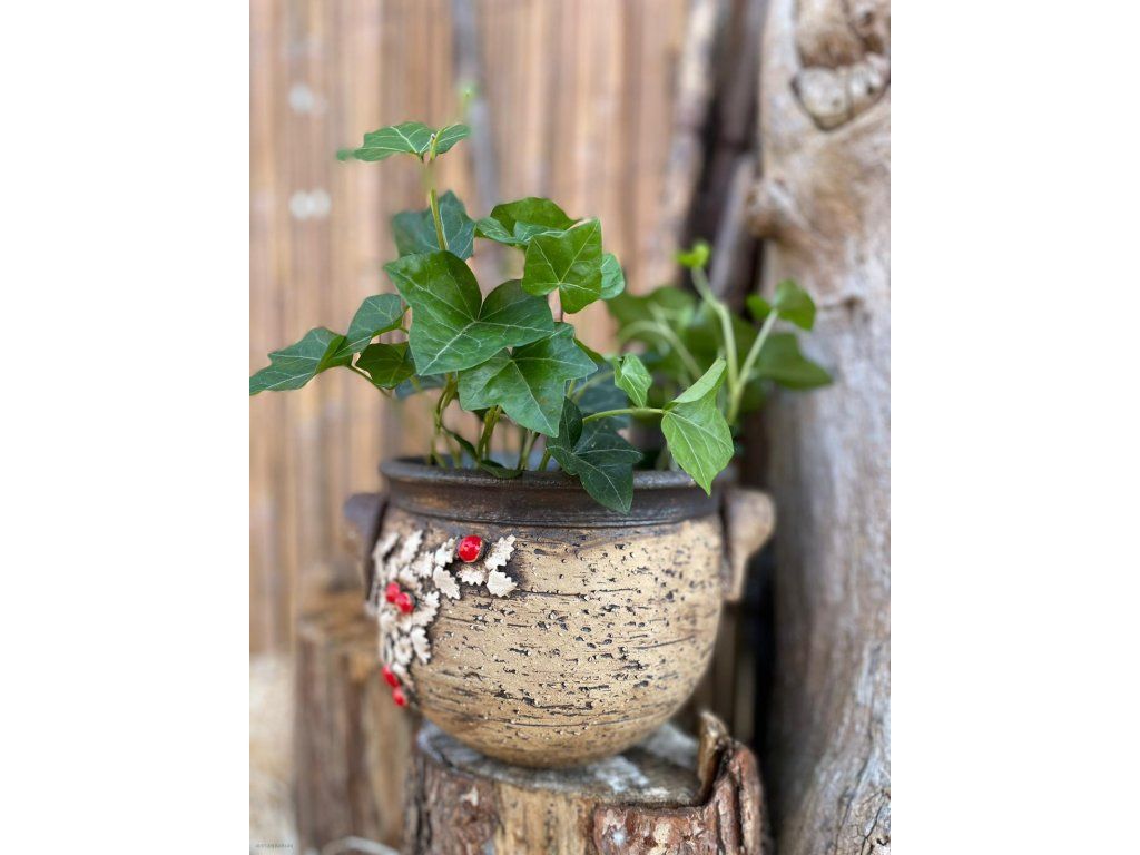 Keramický obal na květináč č.2 - 18cm, cesmína