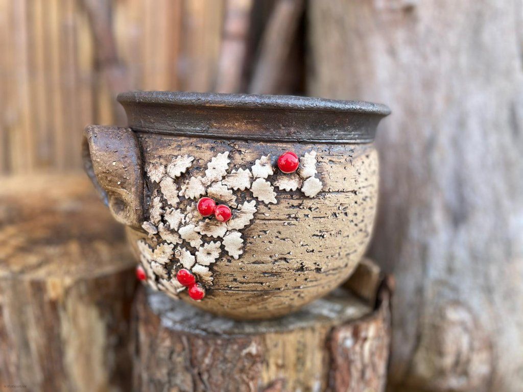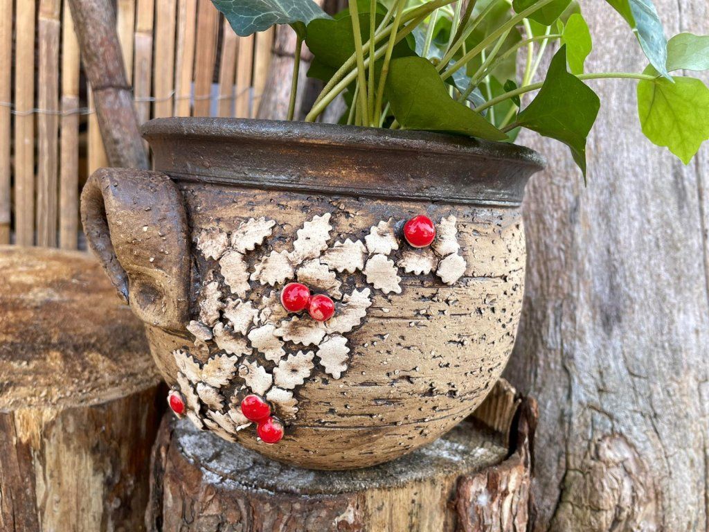 Keramický obal na květináč s motivem cesmíny je krásná a praktická dekorace, která oživí váš domov, balkon nebo zahradu 🌿🪴.