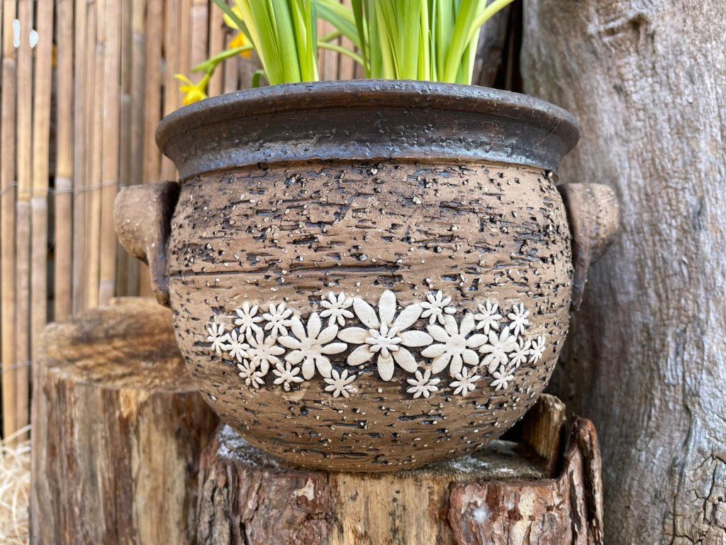 Je vyroben z hrubého šamotu, který je pevný, odolný a má krásnou rustikální strukturu. Díky tomu působí velmi přirozeně a hodí se jak do interiéru, tak i do exteriéru.