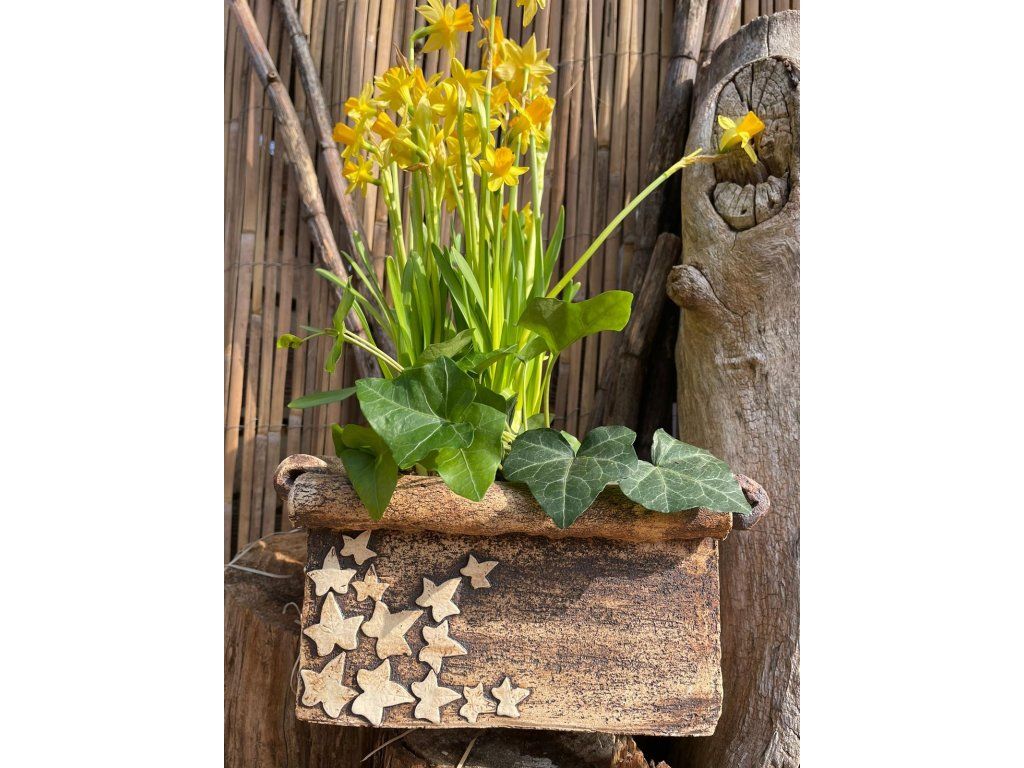 Truhlík je vyroben z jemného šamotu, který má přirozenou rustikální strukturu a působí velmi přírodně. Materiál je pevný a dobře se hodí pro pěstování rostlin.