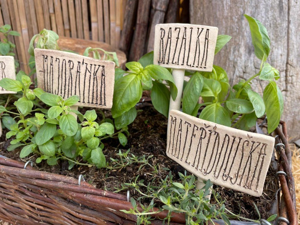 Keramický zápich do bylin je praktická a zároveň krásná dekorace, která pomůže přehledně označit vaše bylinky 🌿🏷️.