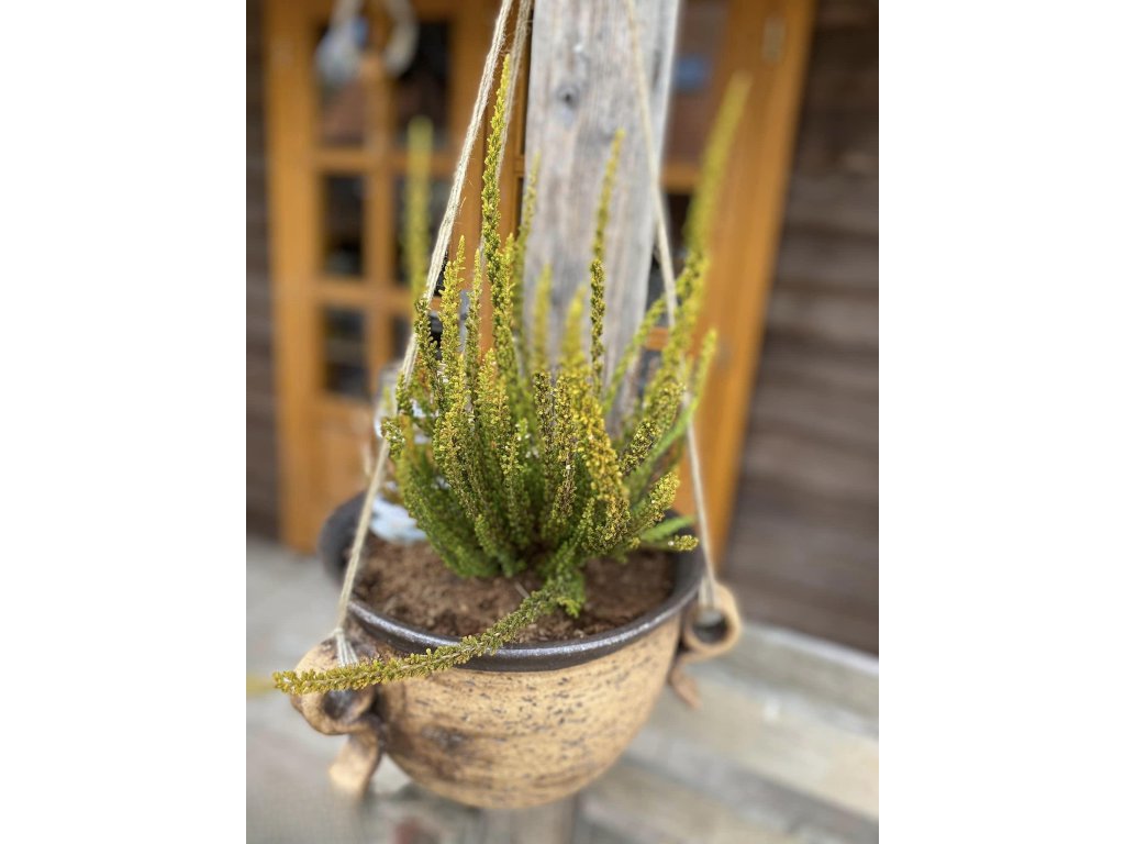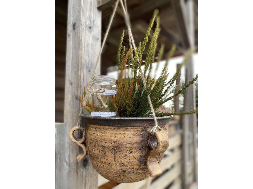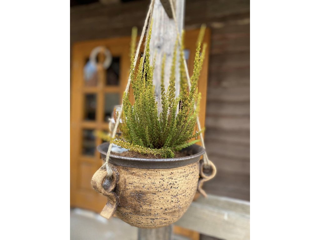 Díky třem pevným ouškům lze obal snadno zavěsit například na pergolu, balkonový hák nebo zahradní konstrukci. Ve výšce krásně vyniknou převislé květiny, bylinky nebo jiné okrasné rostliny.