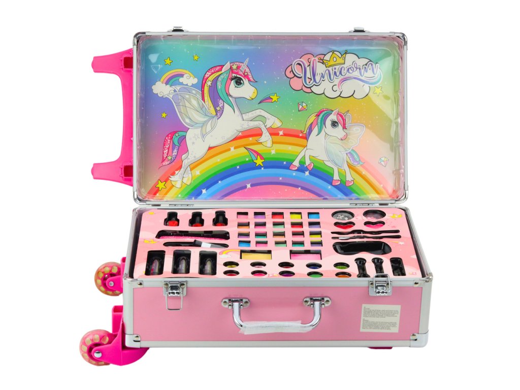 Kosmetická sada v kufru na kolečkách s růžovým jednorožcem