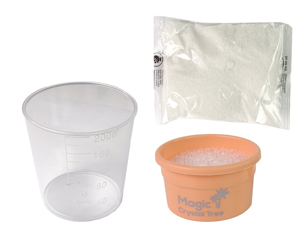 Stačí připravit krystalový roztok podle návodu, nasypat krystalová „semínka“ a umístit stromek do květináčku. Pak už jen stačí pozorovat, jak se na větvičkách začínají objevovat první malé krystalky… a každý den přibývá další a další. Krystaly mohou růst několik dnů až několik týdnů, podle prostředí a použitých poměrů – a to je právě ta magie!