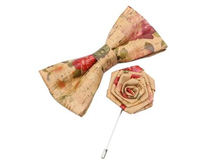 🎀 Korkový motýlek s jarním potiskem + brož v dřevěné...